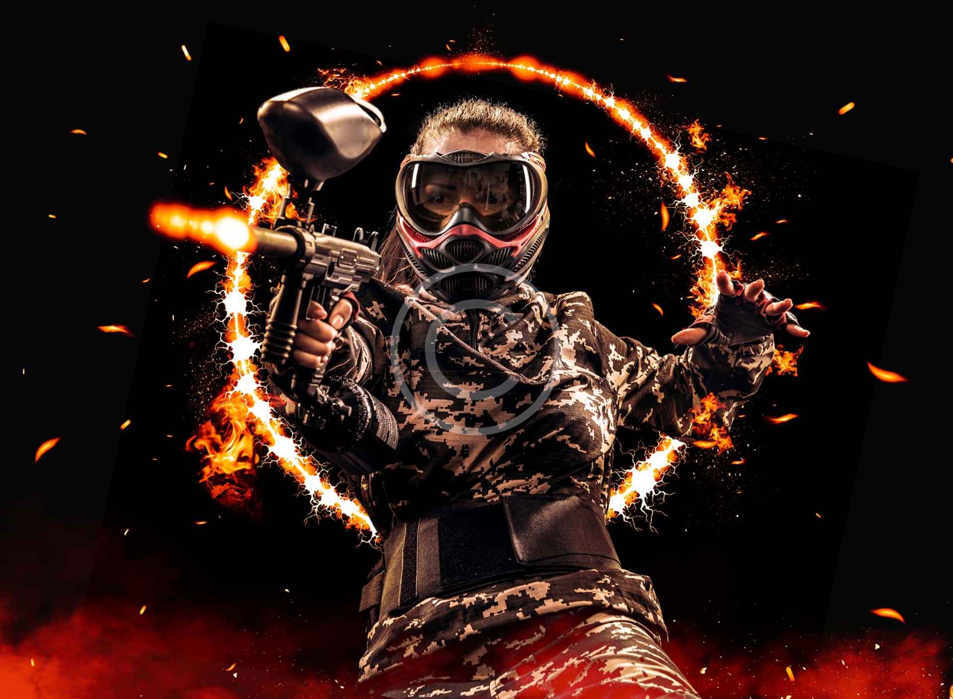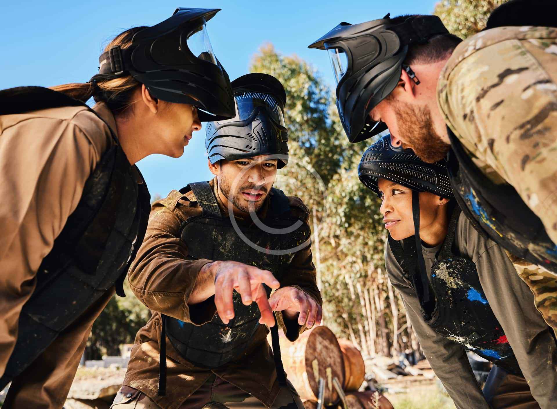 Tactical paintball warfare meets thrilling teamwork in a high-adrenaline battle arena setting.