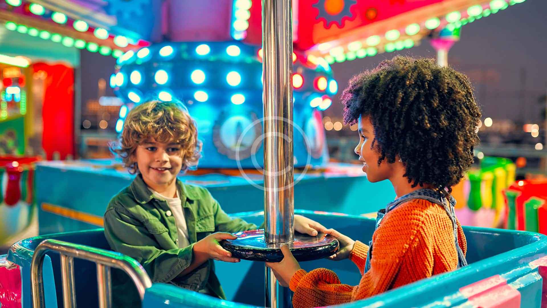 A neon-lit ride experience full of joy, spins, and colorful fun for kids and families to enjoy together.
